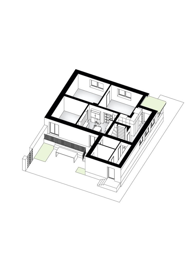 Rekonštrukcia domu v Trnave sa pri stavbe zmenila zo dňa na deň na demoláciu a novostavbu. Klient bol však stotožnený s dispozíciou pôvodného domu, ktorá na malé výnimky kopírovala prevádzku z 50. rokov a vznikol „nový dom so starými maniermi“.